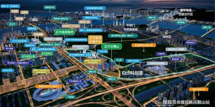 香洲创港中心,位于珠海市香洲区南屏科技生态城,由正方集团开发建设,占地面积约8.7万㎡,容积率约4.0,总建筑面积约50万㎡,投资规模约32亿。