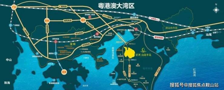 星河山海半岛,位于巽寮旅游度假区门户位置,享有“四高速、一高铁、一机场”三维立体交通网,项目距离高速出口仅6KM,厦深高铁惠东站距离深圳北站仅40分钟车程;未来将规划广惠高速延长线,项目内设有高速出口;另有在建的广汕高铁,深圳第二机场(惠州平潭机场)以及规划中的海上航线,未来将实现海、陆、空全线打通,轻松享受深广1.5小时黄金度假圈生活。