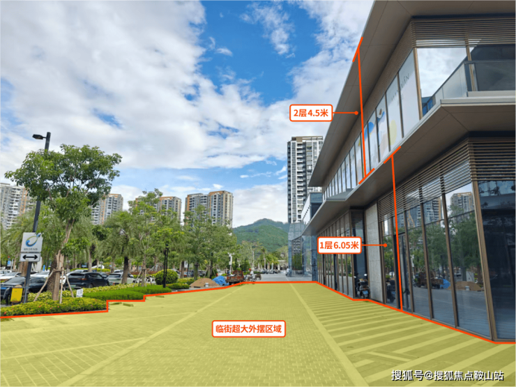空间扩容:超大连廊、外摆区,首层约6.05米奢适层高,2层百变层高,拓展空间充足,为业态创新提供充足拓展可能。