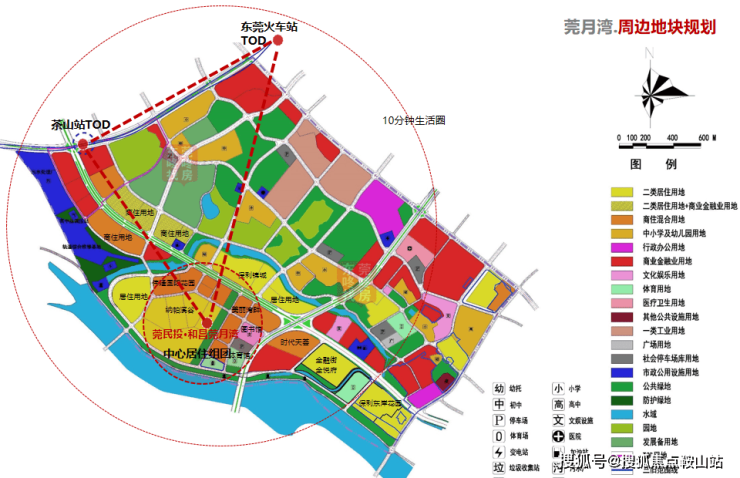 中心居住组团与茶山站TOD、东莞火车站TOD遥相呼应,未来可形成一个10分钟的高品质生活圈。这个生活圈内,有不少是宝贵的待开发商住用地,未来发展潜力巨大,这为项目居住单元的后续升值打下了坚实基础。