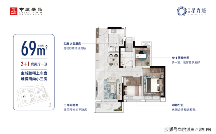 69㎡全南向地铁口三房,白云湖最低总价上车户型