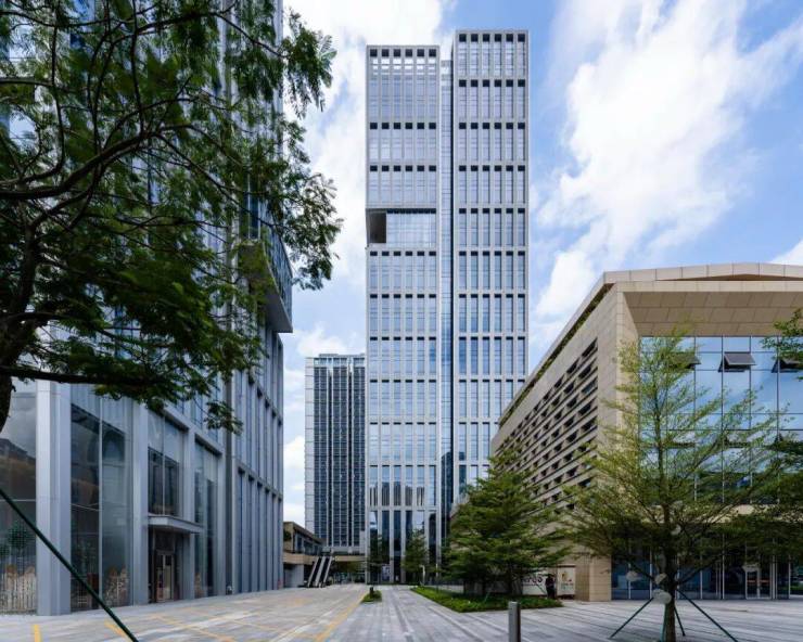抬头望去,塔楼如同巨大的魔方,被巧妙地错动与堆叠。它们在体量上相互呼应,却又各具特色。这种设计不仅让建筑更具视觉冲击力,更创造出丰富的空间体验。建筑的表皮如同一件精心编织的外衣。水平与竖向的金属遮阳板,如同阳光下的鳞片,反射着光影的变化。它们不仅为建筑遮挡烈日,更让整个建筑看起来简洁而富有科技感。