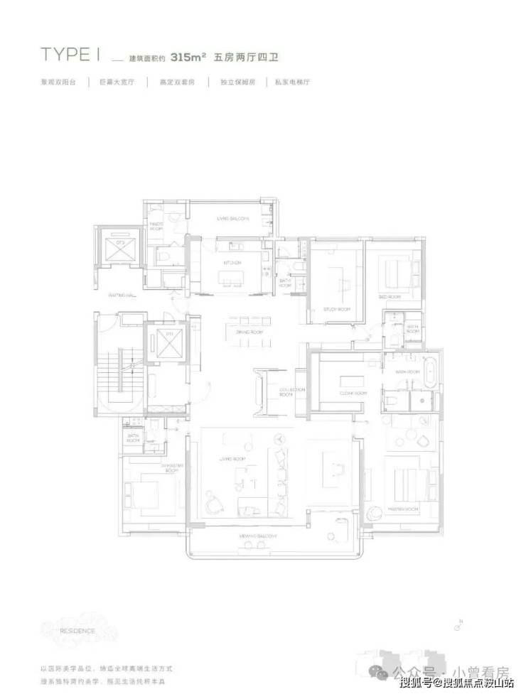 【315㎡户型】南北双阳台-独立保姆房-巨幕大宽厅-私家电梯厅