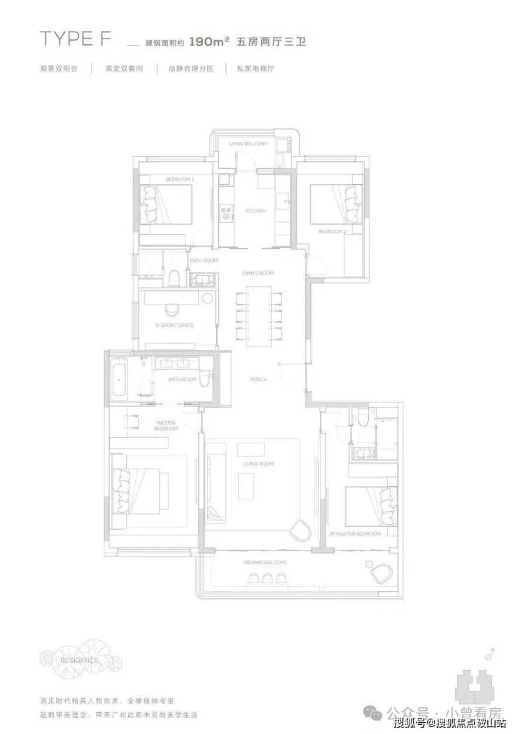 190产品为五房两厅三卫产品,充满了对云端人群生活的独特见解,南向双主卧,中西厨布局,打造纵向超长LDK一体化空间,产品所体现的不只是居住产品,更是特属客群所拥有的生活方式。