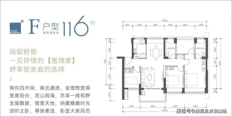 116㎡的4房2厅2卫,F户型,设计的是竖厅南北通透格局,餐客厅一体化设计,客厅3.8米开间,四开间朝南,4个卧室分别做到了主卧18.02㎡/次卧12.3㎡/次卧8.7㎡/次卧8.37㎡(包含墙体飘窗),都不用搭配飘窗做床,L型厨房,卫生间干湿分离,得房率约:88%(包含赠送),阳台主朝西南或东南向。