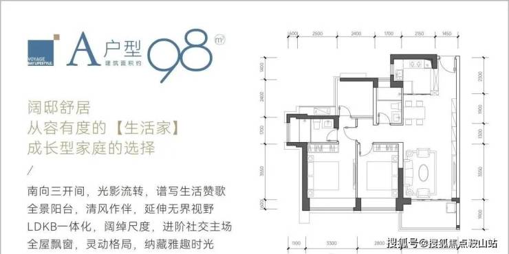 98㎡的3房2厅2卫,设计的是经典竖厅格局,LDKB一体化设计,客厅3.6米开间,三开间朝南,动静分区,3个卧室分别做到了主卧13.69㎡/次卧11.62㎡/次卧5.76㎡(包含墙体飘窗),都不用搭配飘窗做床,L型厨房,卫生间干湿分离,得房率约:89%(包含赠送),西南、东南或正南朝向。