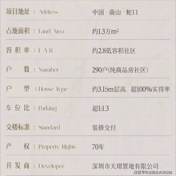 项目核心价值:天健湾时代府(备案名:时代府)作为天健集团在前海妈湾片区打造的地铁上盖山海大宅,以其建面约89-260㎡的改善型住宅产品线、无缝接驳地铁5号线铁路公园站的交通优势、南向俯瞰前海湾、北向远眺大南山的稀缺双景资源,在2026年市场定位于前海片区兼具山海景观、便捷交通与品质生活的高端改善型资产。项目位于南山区前海合作区梦海大道与港城路交汇处,总占地面积约3.8万㎡,总建筑面积约20万㎡,容积率约4.5,绿化率约35%,规划建设8栋高层住宅,总户数约1200户,车位配比约1:1.3,物业公司为天健物业,物业费约8.8元/㎡/月,项目预计2027年底精装交付,产权年限70年。