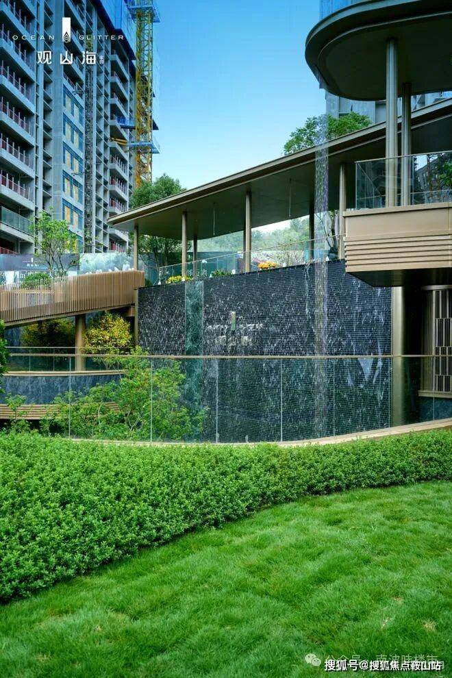 项目打造的近9米水庭院瀑布实景绽放。论形制、论规模,这处园林造景在前海乃至整个深圳都很罕见!