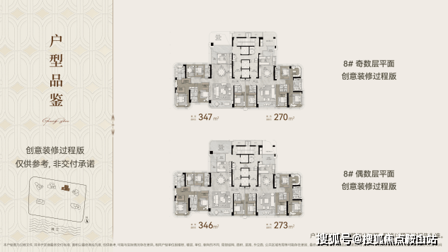 6/8栋270-347㎡:49层高,3梯2户配置,5.7-7.9米宽厅设计,奇数层配备32㎡6.6米通高平台空间。
