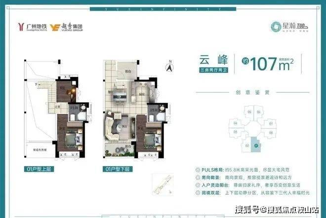 户型鉴赏,在售73-112方平常二至四房,98-107方复式四房。