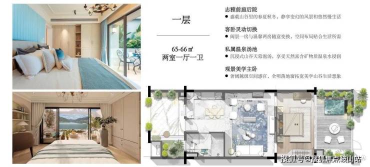 【产品面积】65㎡平层,1+1(一室一厅)