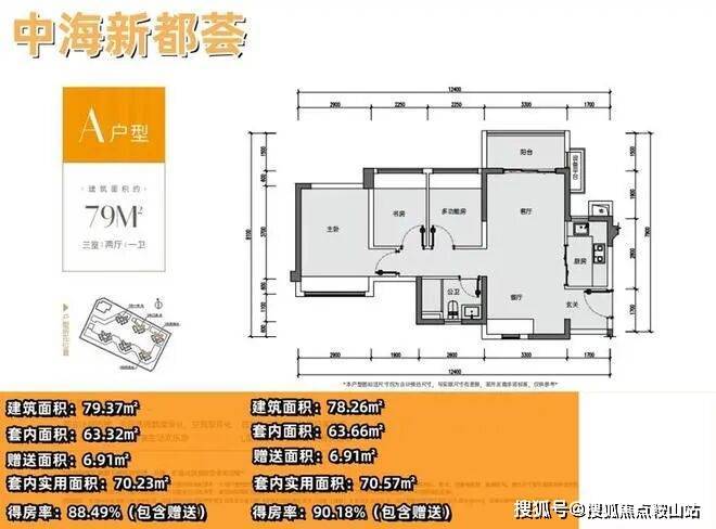 设计的是竖厅格局,客厅3.3米开间,S墙体设计预留双开门冰箱位,动静分区,三开间朝南,L型厨房,3个卧室的宽度分别为3.5/2.7/2.5米,得房率87.96-89.68%(包含赠送),阳台进深1.5米,朝西南或东南向。深圳楼市一分钟新闻早餐
