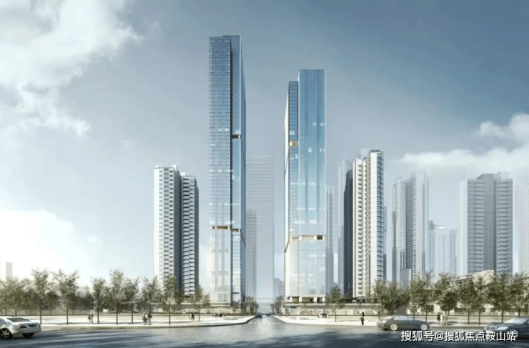 共 4 栋塔楼,其中2栋住宅2栋办公,2栋住宅31F、2栋办公分别为31F和38F,两个小地块为架空园林,通过2层连廊连接。