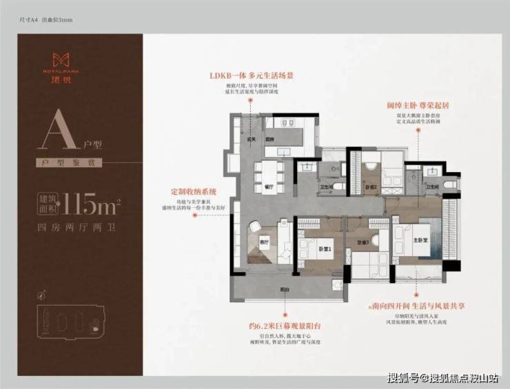 115㎡奢阔4房,总价780万起,有俩个户型仅可售85套