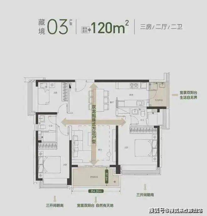 珑樾山建面约 120 ㎡ 03户型3房2厅2卫