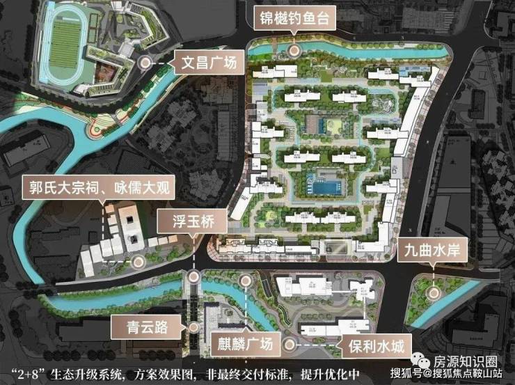 根据方案,项目将以“一心一轴一门户”为核心,打造水岸花河、灵感漫游、美馔别院与门户形象综合体等多元组团。