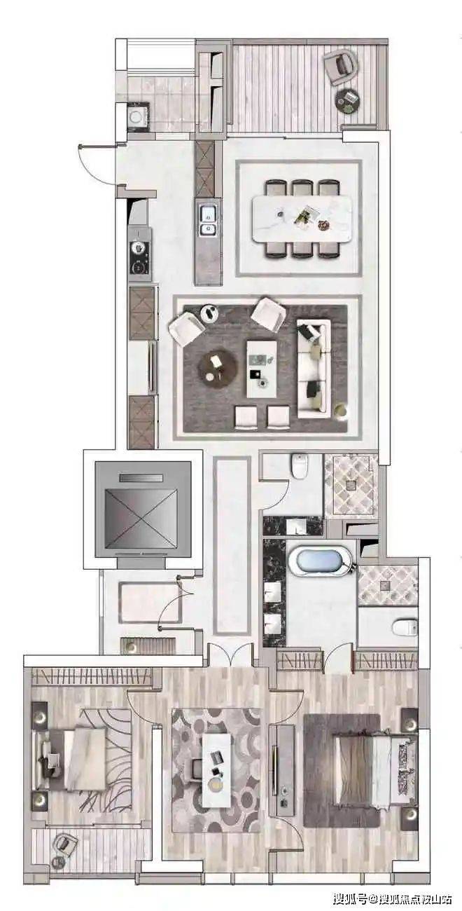 联合凯达国际、AECOM、CCD郑中设计、DIA丹健国际、梁志天、黄志达等大师团队。按照全住宅的设计理念、带阳台通燃气、且A栋为专梯入户奢居空间、B栋为3梯5户的精致空间;全屋采用如嘉格纳、Miele等近20个国际顶级一线品牌。