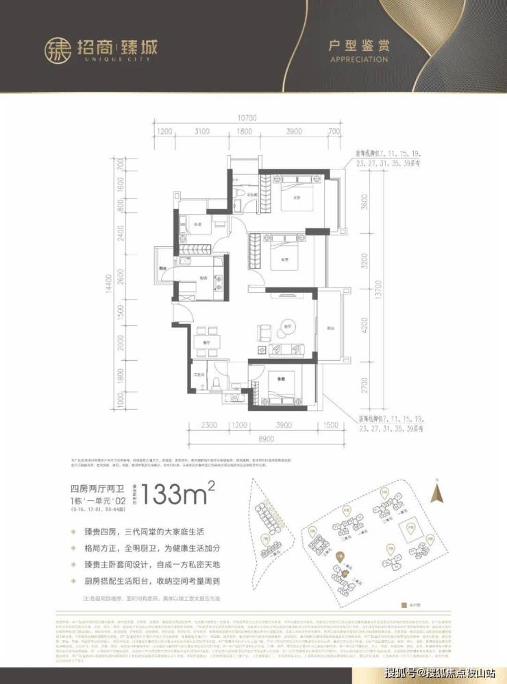 :总建面约96万㎡,分四期开发,涵盖住宅、商业、办公、教育等业态,容积率5.64,绿化率40%,车位比1:1.29,物业为招商积余(管理费4.6元/㎡·月)。