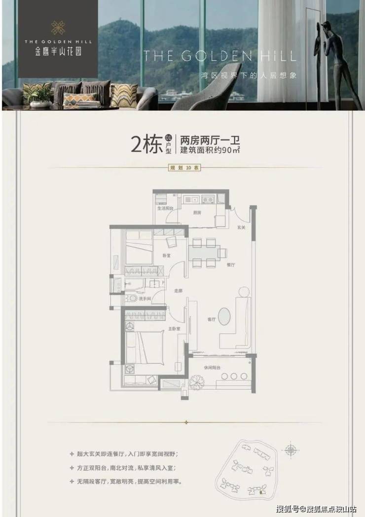 01户型:90㎡,2房2厅1卫(南,售罄)