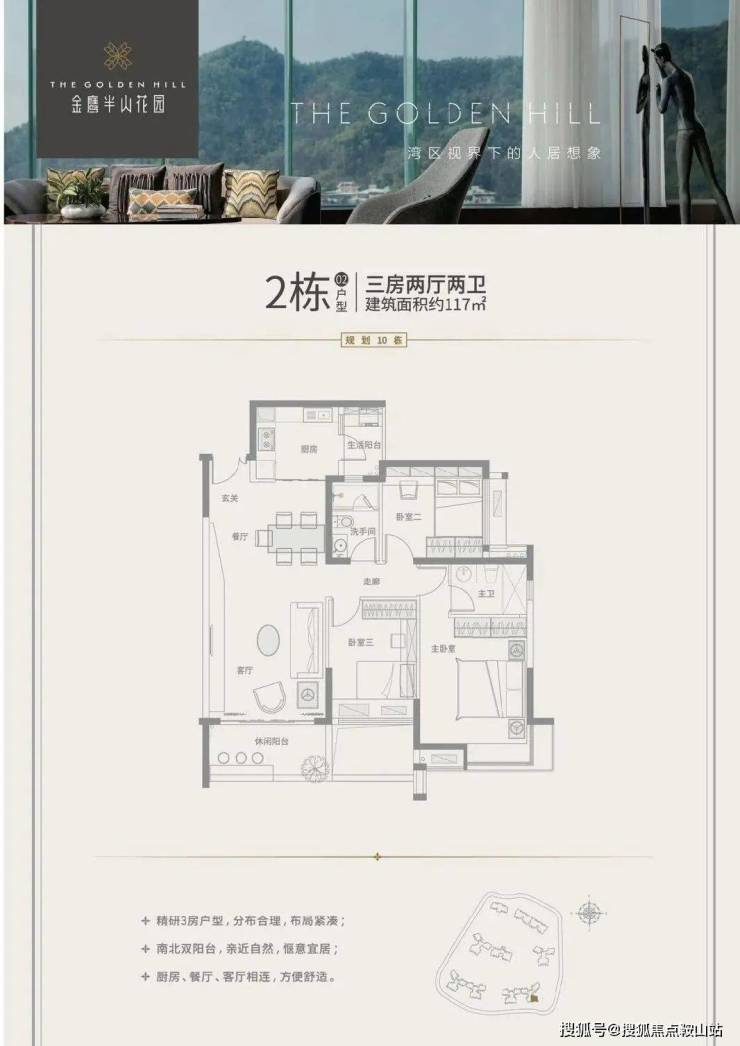 02户型:117m²南向3房2厅2卫(户型同9栋)