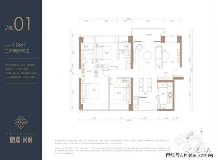 建面约118㎡3+1房2厅2卫