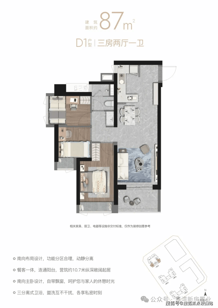 而建面约87㎡的3房户型仅能做到1个卫生间,相较交于同面积段主流的3房2卫功能性要差一些,而且这种超高层的使用率也会低很多,更无法与那些同面积段高赠送的4房2卫户型比较。