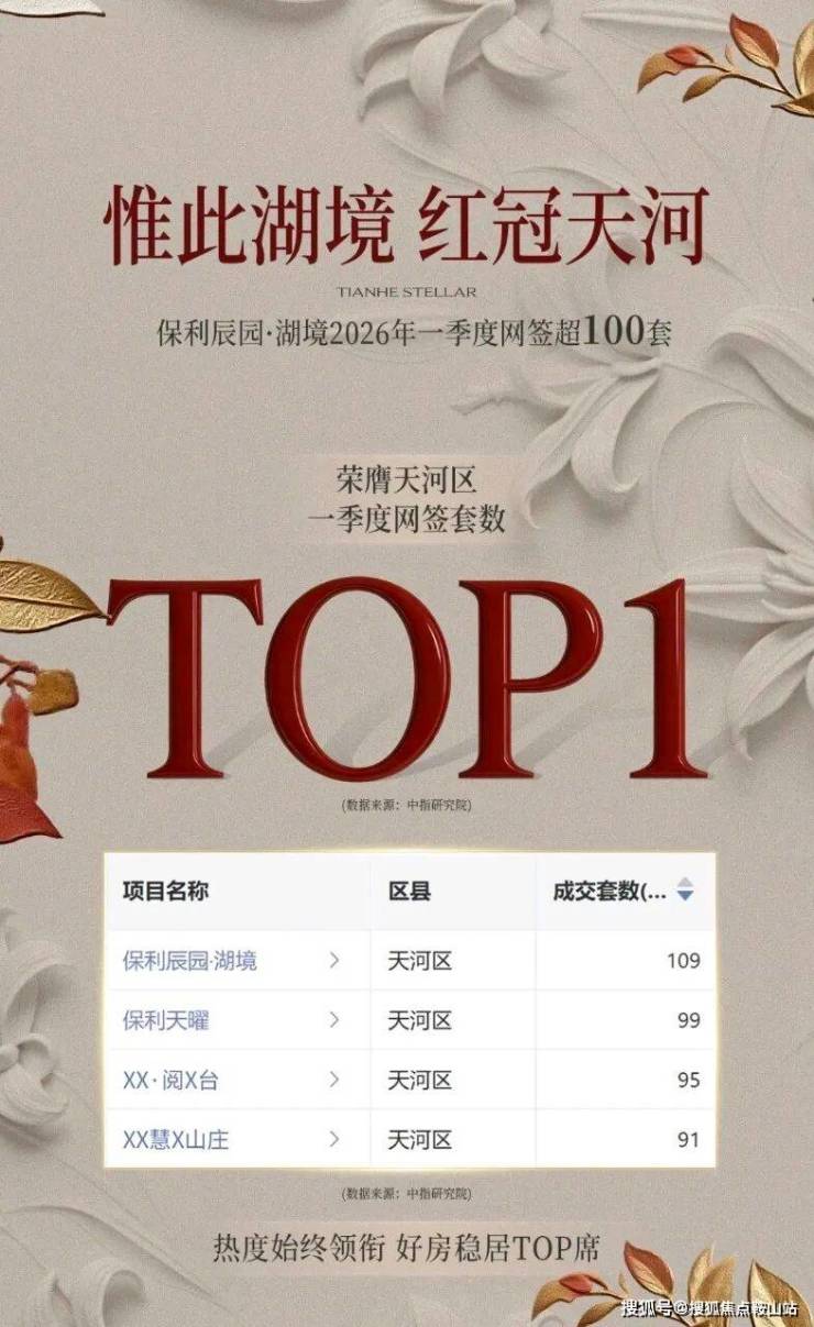 一季度天河区的网签排名,排第一的不在珠城,不在金融城,而是世界大观板块的保利辰园·湖境,一季度网签套数天河第一,3月单月成交超百套。