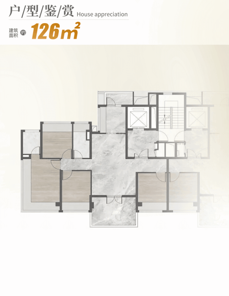 建面约126㎡四房,是市面为数不多的130㎡内做到板楼的产品。