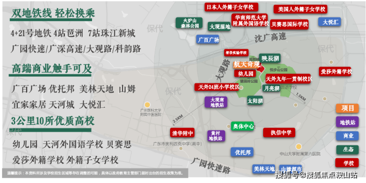 交通:距21 号线大观南路站约 1.2-1.7 公里,公交 / 电瓶车接驳;自驾紧邻广园快速、大观路、机场第二高速,30 分钟直达珠江新城、金融城、琶洲三大 CBD。