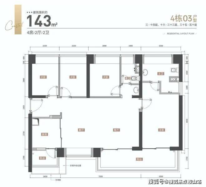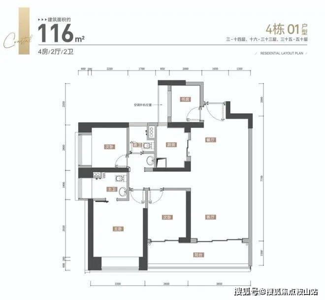 4栋、5栋:4梯5户,层高3.1米,01-02户型116平3房2卫,03、05户型142平4房2卫,04户型120平3房2卫;