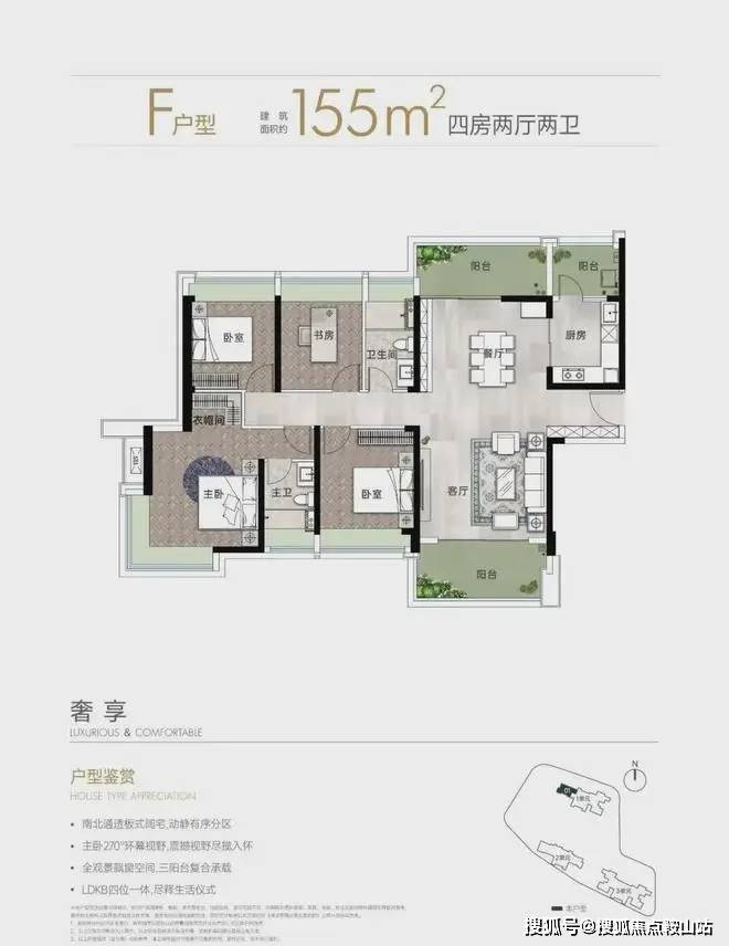 4. 155㎡户型,29套,四房设计,空间更加宽敞,满足改善型居住需求,可设置独立书房、衣帽间等,提升生活品质。