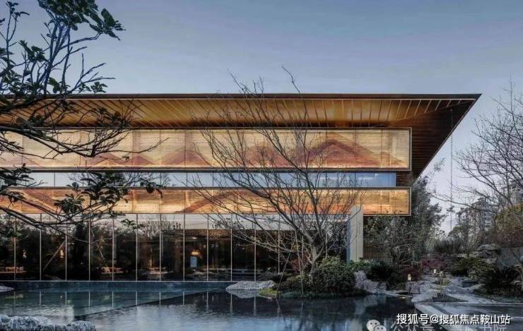 绕过清逸不失威仪的东方门庭,迈入一方中式传统围水庭院,方形古亭如玉玺定于水中央,池底锦鲤绕芙蕖的吉祥装饰,充满美好寓意的“华纹”设计,绘就闻水而归的东方意境。