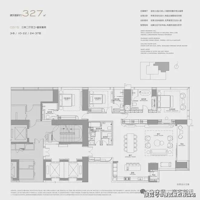 主力户型:303㎡、327㎡、404㎡、568㎡等大平层,最大户型达1032㎡