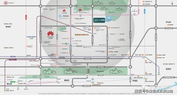 南有南山科技园,北有坂雪岗科技城,这就意味着片区聚集了大量的高科技人才,能够提供强劲的购买力,周边的房价也将是整个片区的标杆。