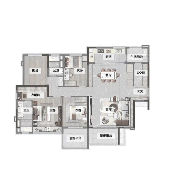 5种面积段户型全明通透,恰到好处的楼间距和楼型,让自然风通过中心公园、城市绿地对流,让居民的家成为“会呼吸的房子”。