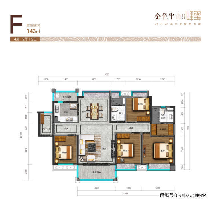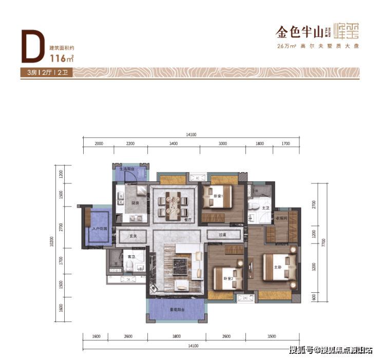 【稀缺台地大洋房】项目依山而建,打造2梯4户,96-141平3房至4房。