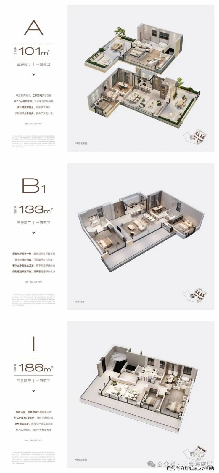 户型与房价:在售叠拼商住别墅LOFT,户型面积为101-187㎡,精装交付参考均价20000元/平方米。❤️ 建筑设计: