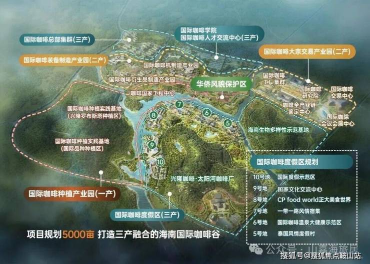 🟫项目产城规划5000国际全产业咖啡谷🔸中国首个咖啡硅谷项目🔸7 大产业片区相辅相成🔸一产种植、二产加工生产🔸三产研发教育+会议会展+交易金融+仓储物流+文化节庆为一体