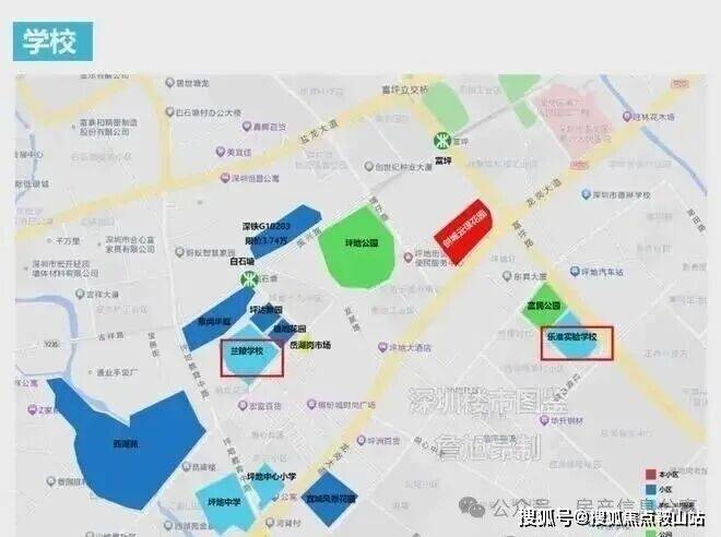 项目自带1所9班幼儿园,楼下规划1所九年一贯制学校,周边距离610米外还有深圳市龙岗区乐淮实验学校,略远点距离1.2公里外还有深圳市龙岗区兰陵学校,除此之外周边还有多所优质民校。