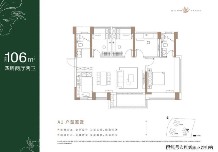 106㎡的4房2厅2卫,折后总价285-312万/套,单价2.67-2.93万/㎡。