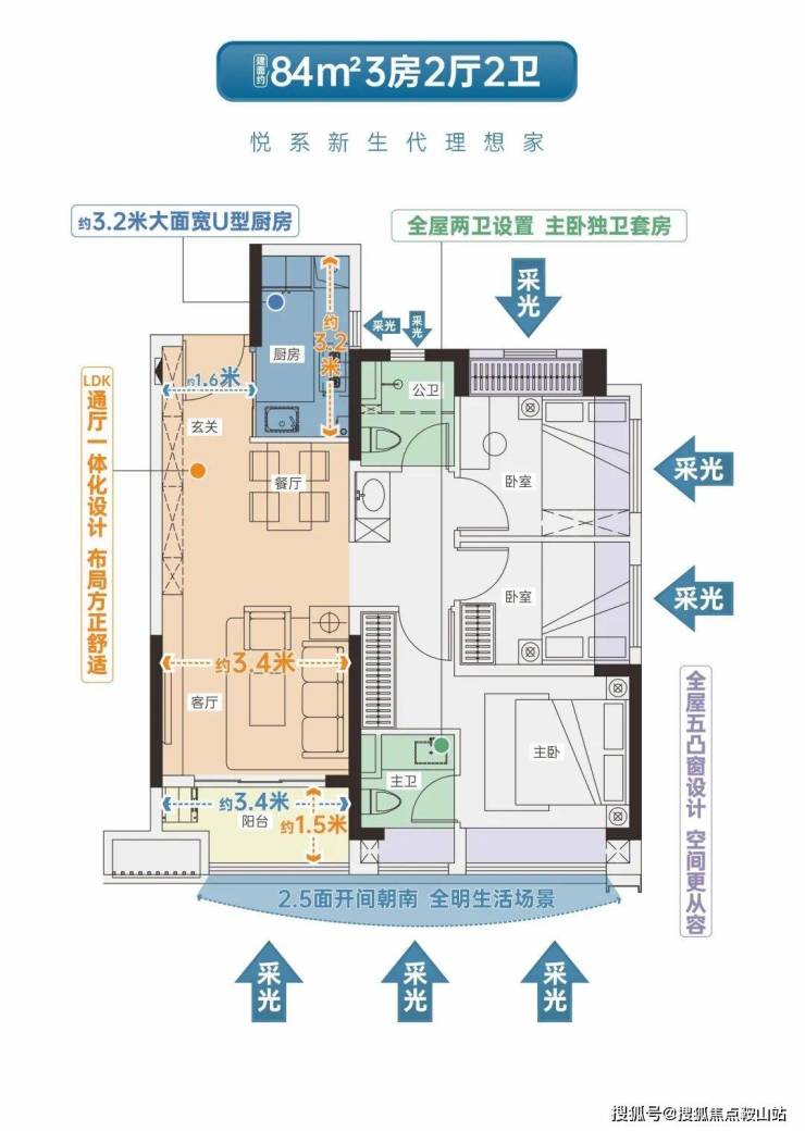 •LDK通厅设计,双开间超6米宽景阳台