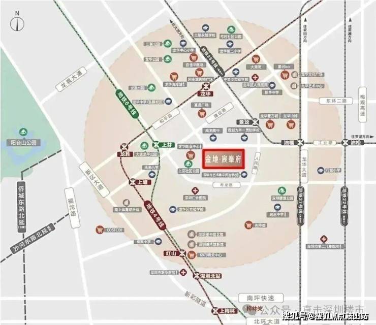 项目距离壹城中心商业仅一路之隔,到达4/25号线龙华站距离仅400米,未来楼盘周边也将规划两所九年制公办学校。