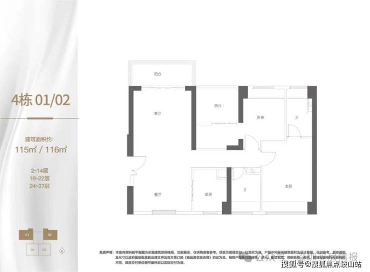 建面约115/116㎡3房