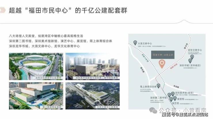 周边涵盖深圳美术馆新馆(试运行)与深圳市第二图书馆(已开放)两大深圳新十大文化地标;近享深圳文化馆新馆(在建中)、简上体育综合体、深圳书城(龙华城)等市级文体项目,打造10分钟文体服务圈,构建对标世界的艺术文化生活区。
