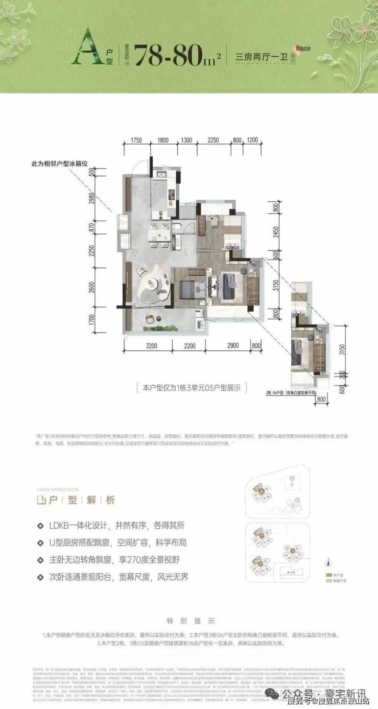 首次推首北地块1栋3单元,约80-92㎡ 3房,共195套,新规使用率高达96%-105%!