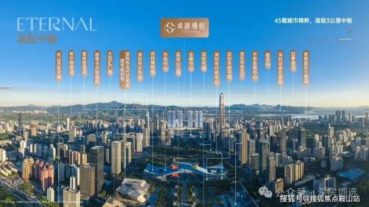 深圳中轴,由规划泰斗吴良镛、周干峙仿北京中轴线绘制,串联起莲花山、市民中心、福田CBD、新皇岗口岸等城市发展精粹,不仅是城市地理文化中轴线,还是全国含金量领衔土地之一,少有的“行政+金融+科技”中轴,以无可复制的地脉能量,撑起深圳昂首世界的身姿。