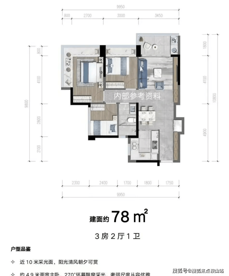 整个中区主力户型为建面约79-138㎡三至五房,以及少量建面约168㎡产品,均为市面上最热销产品。