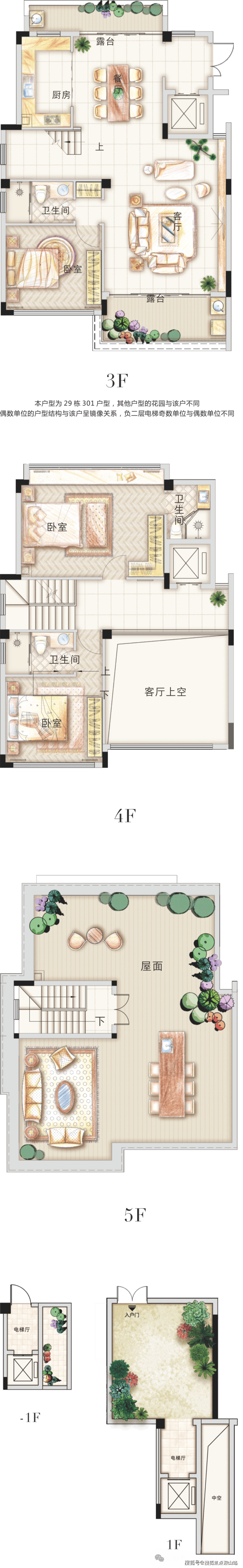 •交楼状况:毛坯(可委托精装)、私户电梯、独立院子(上下叠均有)