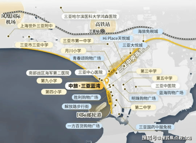 中旅·三亚蓝湾位于迎宾路和三亚湾路的十字路口,这是一个核心城市、核心地段的超级地点。
