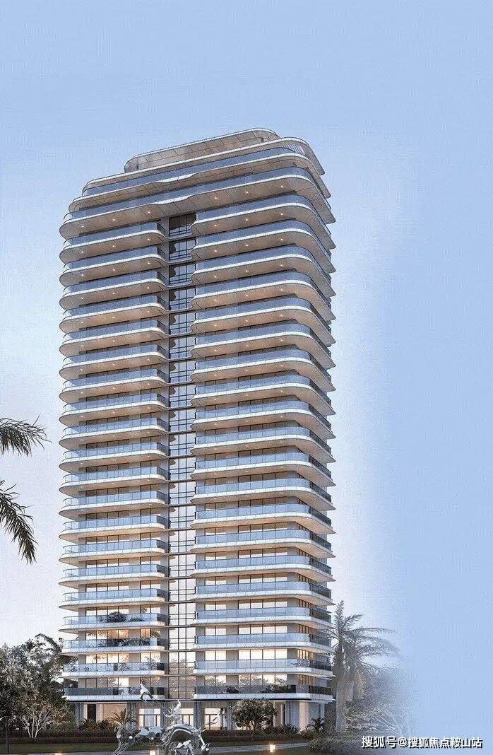 项目以全点式环抱布局,确保栋栋瞰海无遮挡。独创 “曲幕美学”立面,以流动曲线呼应海浪,约164米天际高度,让建筑成为收纳海天景致的艺术框架。